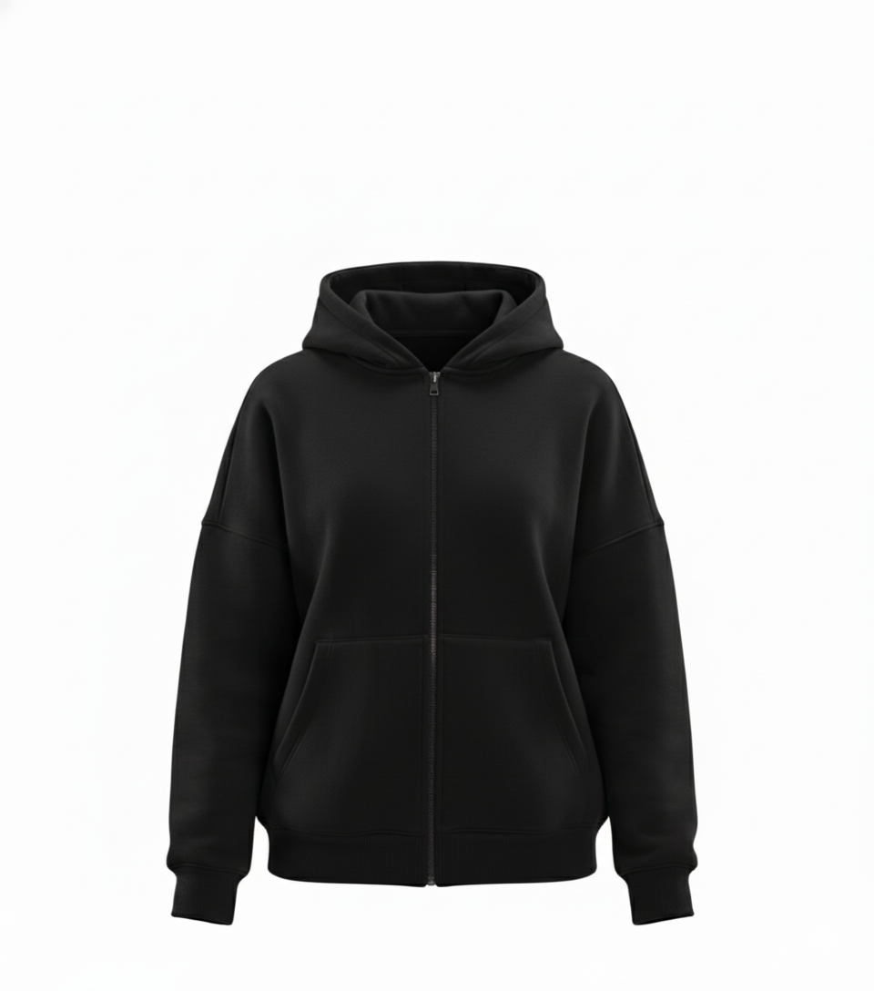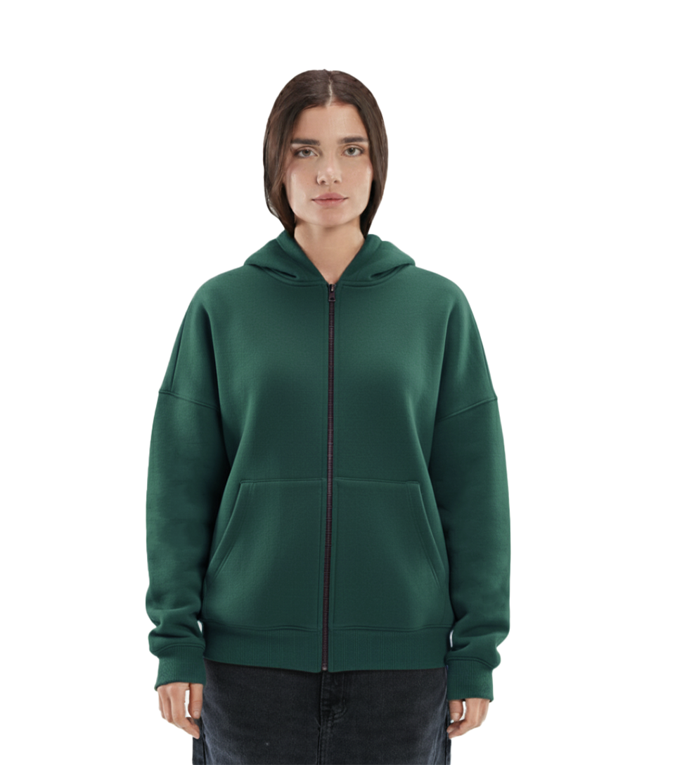 A structured zip hoodie crafted with a 100% cotton face for a smooth, premium feel. Designed with a relaxed silhouette, full-length metal zipper, and a lined hood for added comfort. Finished with ribbed trims and a clean, minimal profile.