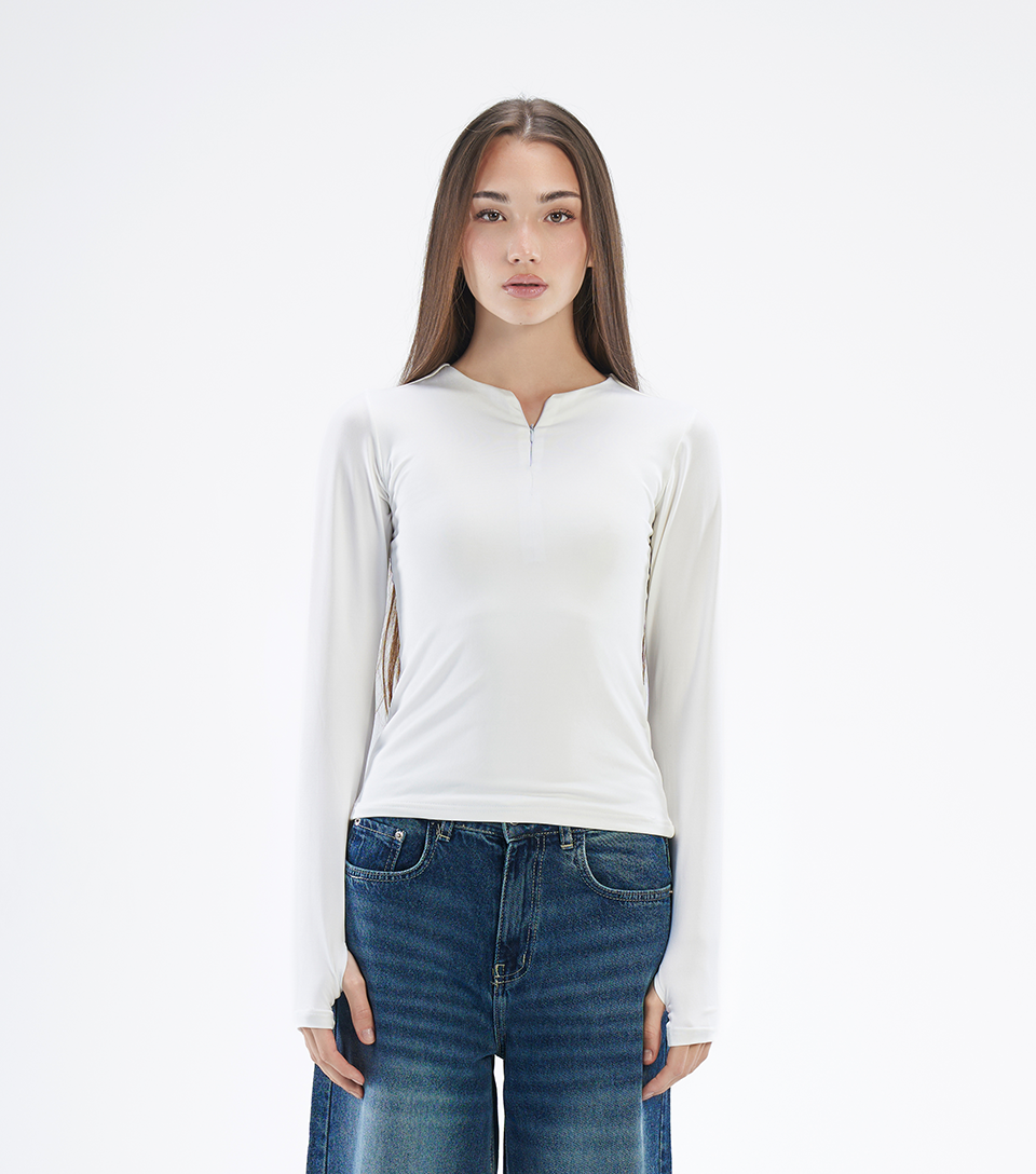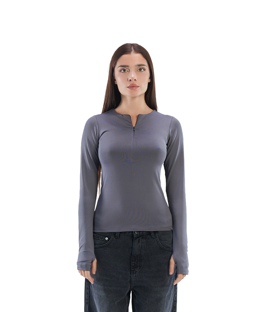 A fitted long sleeve designed to smooth and define. Made from a soft, high-stretch fabric with a clean, minimal finish. The front zipper neckline offers adjustable styling for everyday wear.